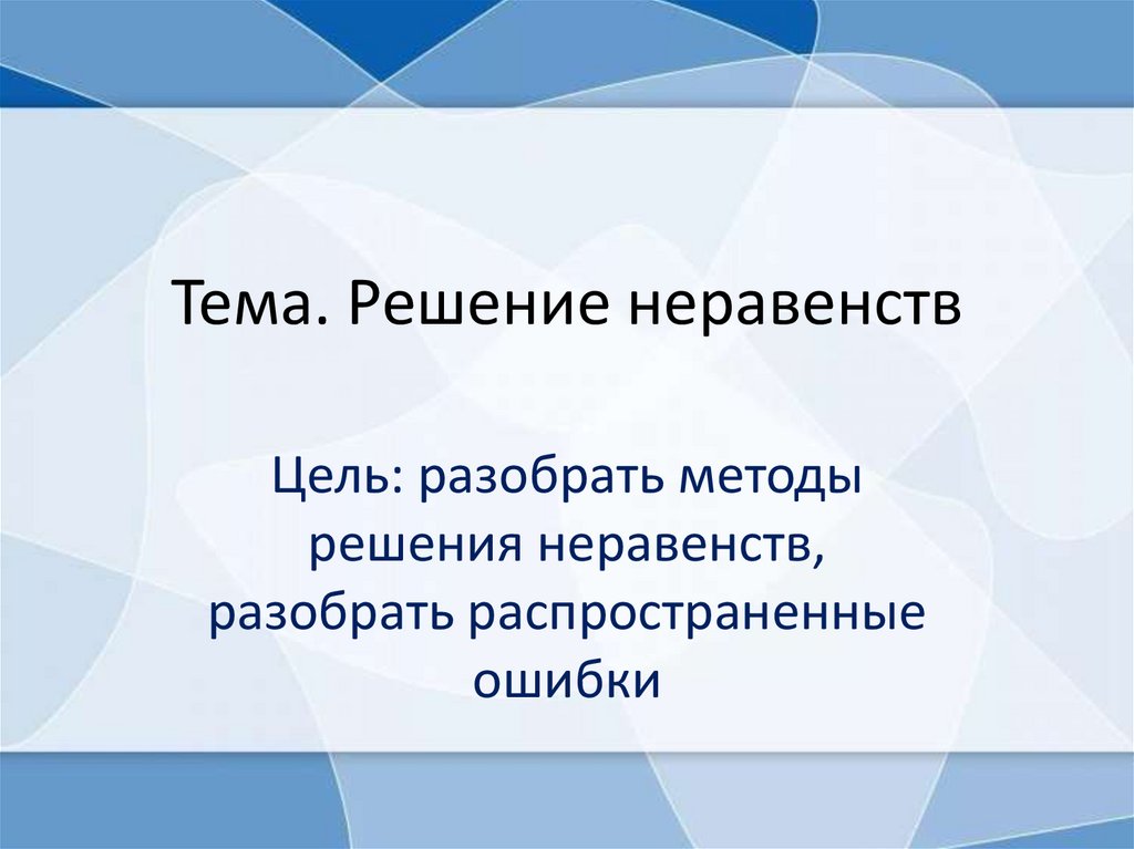Тема. Решение неравенствЦель: разобрать методы