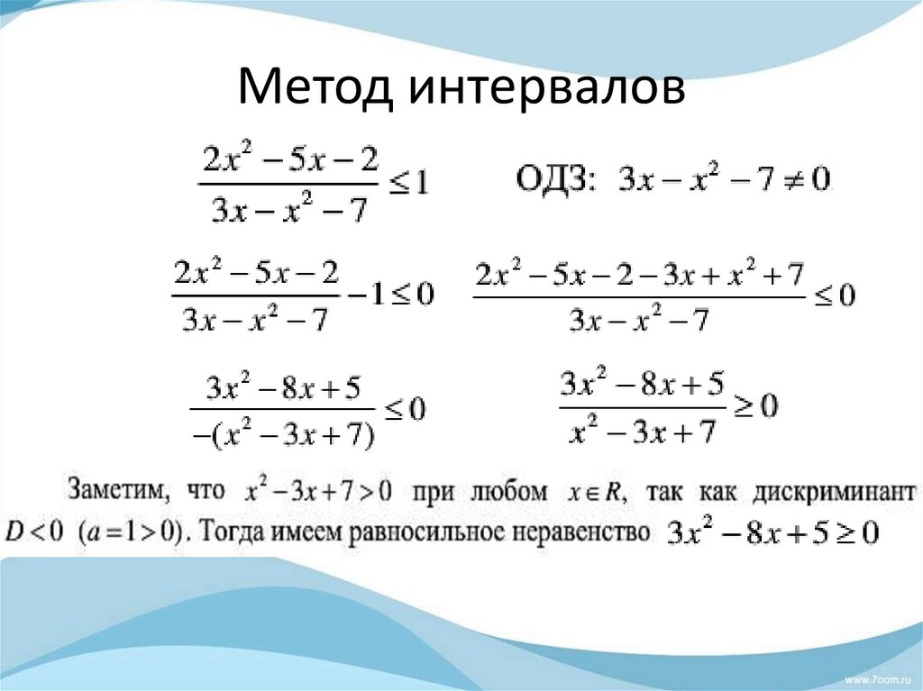 Метод интервалов решениярациональных неравенств