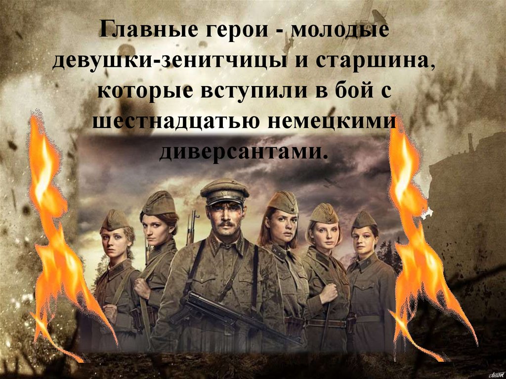 Главные герои - молодыедевушки-зенитчицы и старшина,