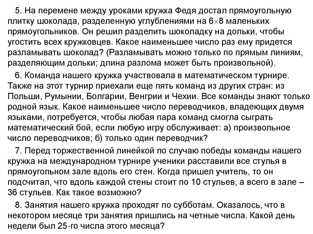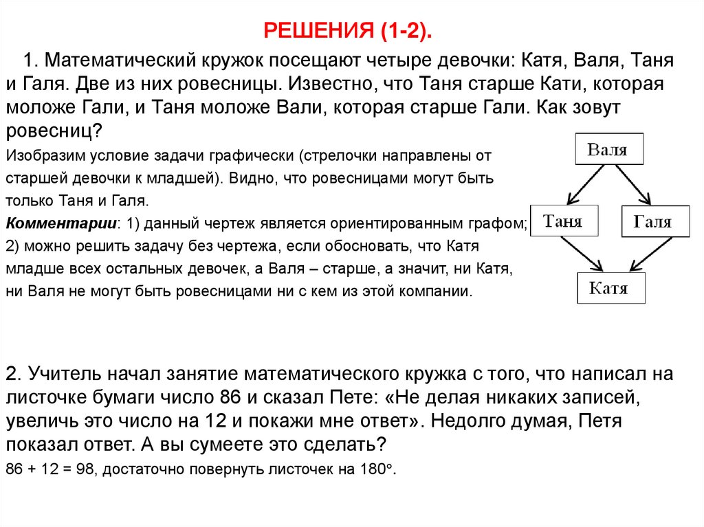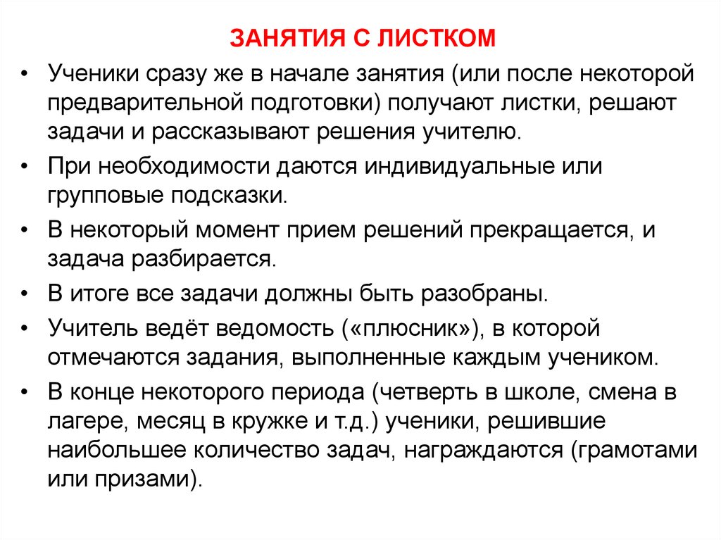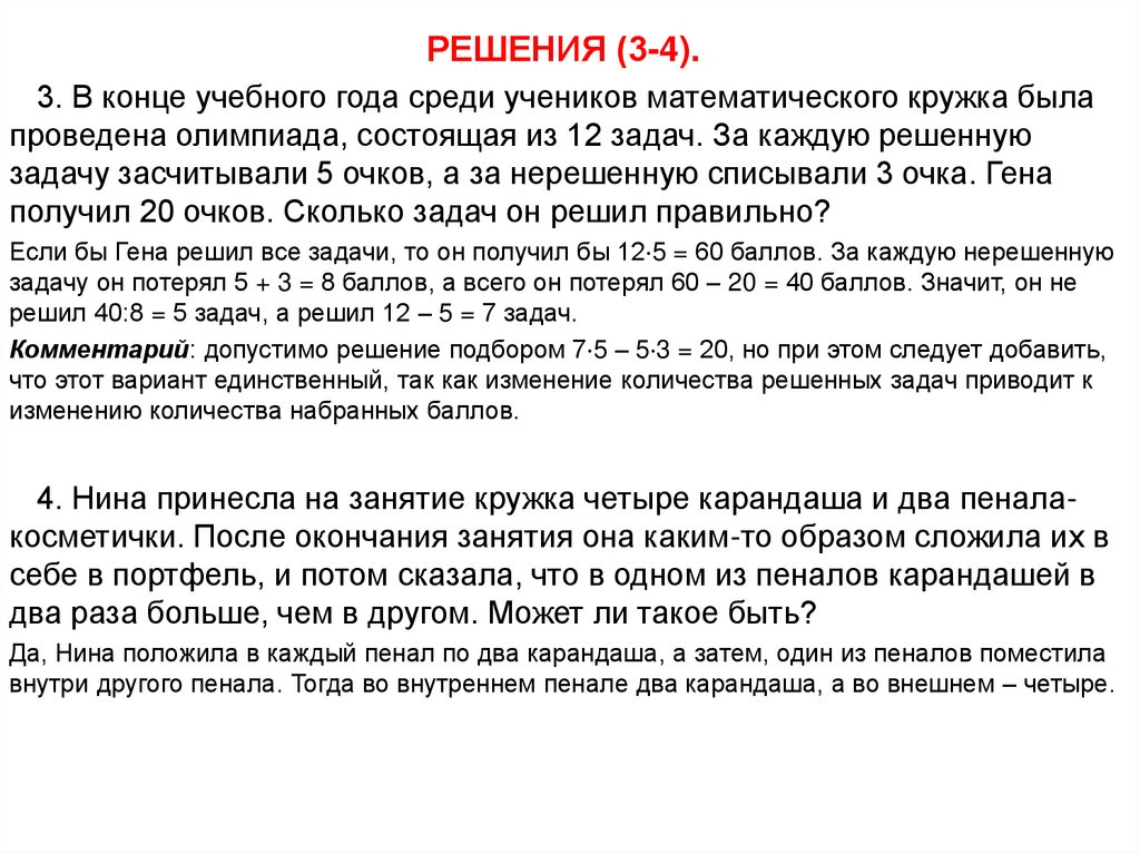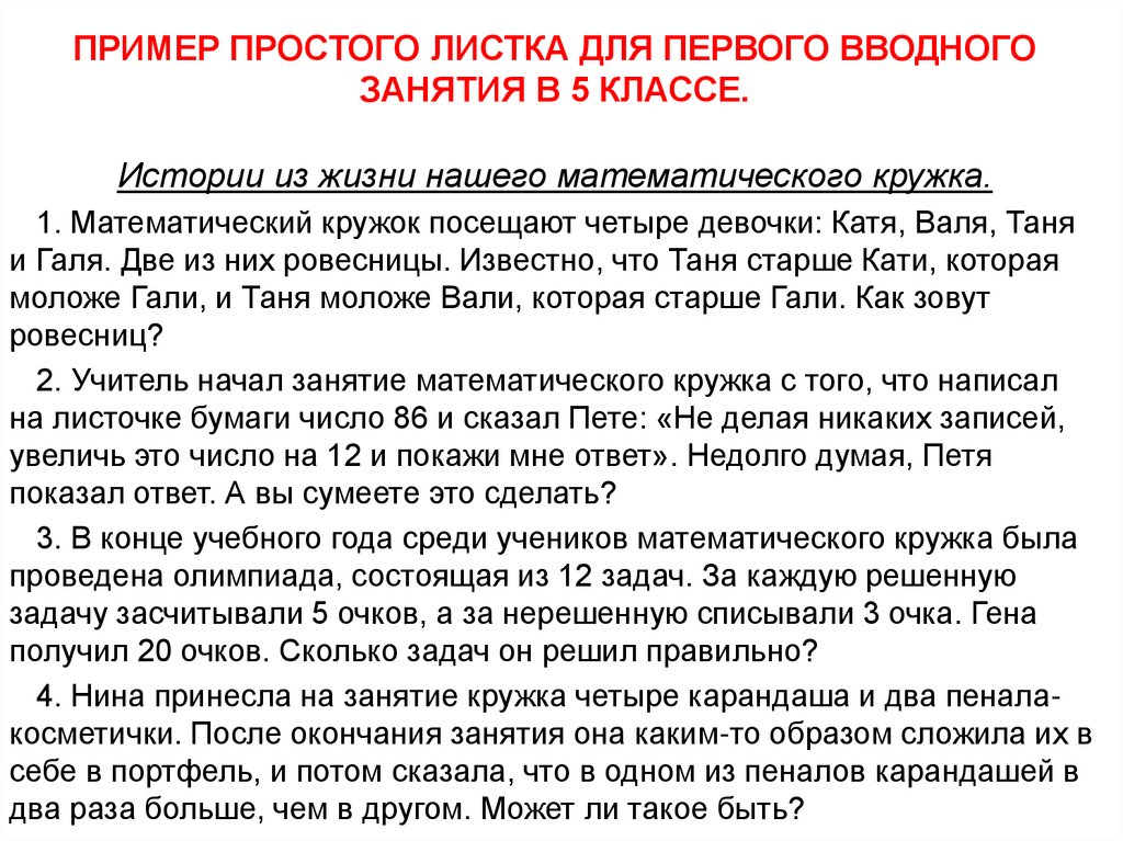 Работа с задачами на математическом кружке