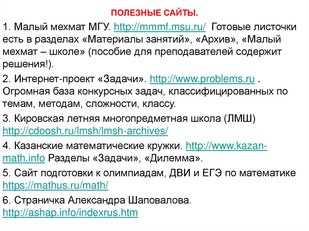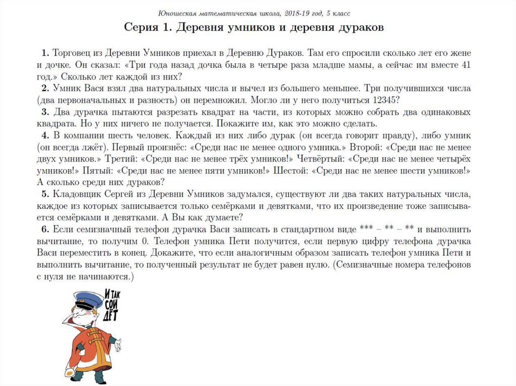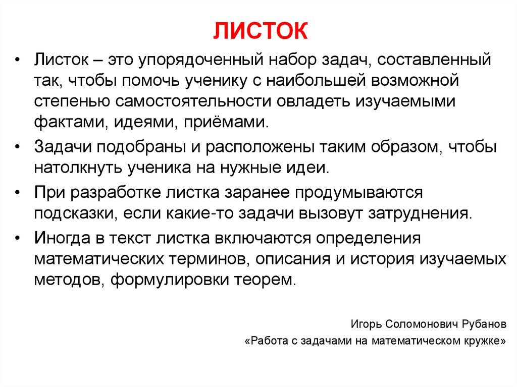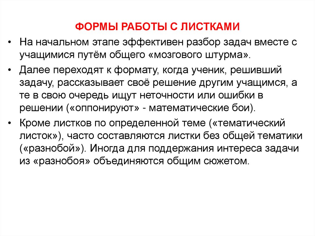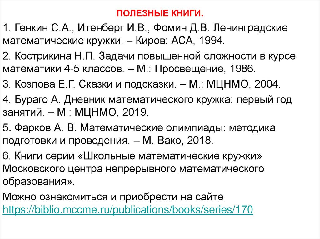 Работа с задачами на математическом кружке