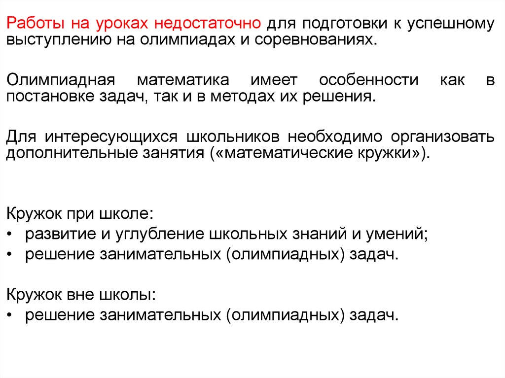 Методические основы организации работы школьных математических кружков как способа подготовки к математическим олимпиадам