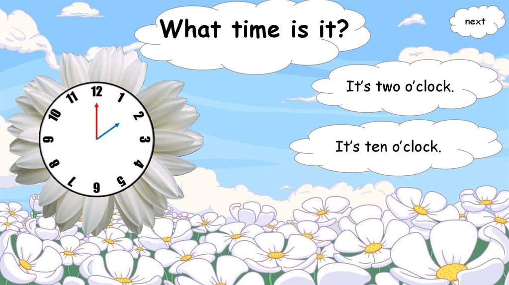 What time is it?It’s two o’clock.