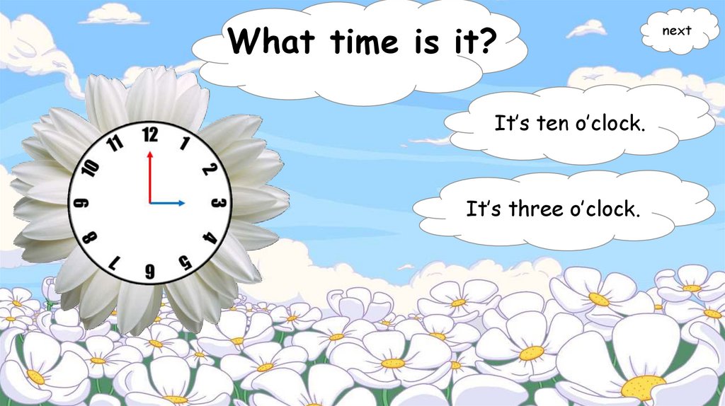What time is it?It’s ten o’clock.