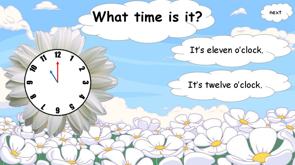 What time is it?It’s eleven o’clock.