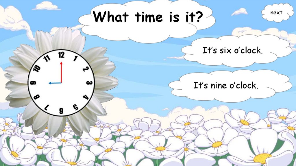 What time is it?It’s six o’clock.