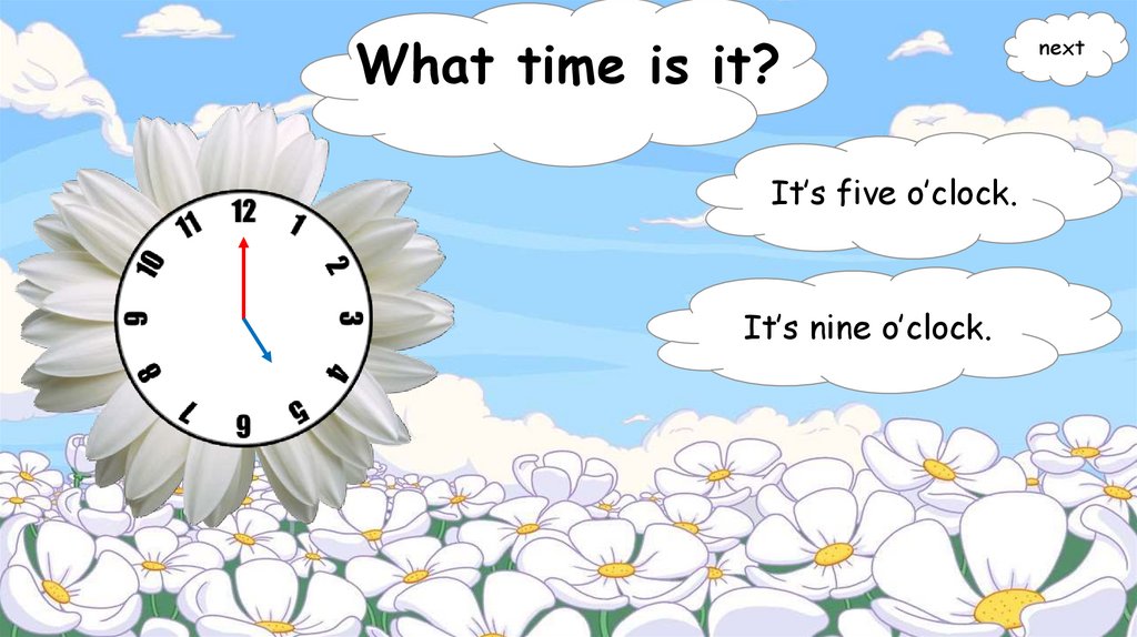 What time is it?It’s five o’clock.