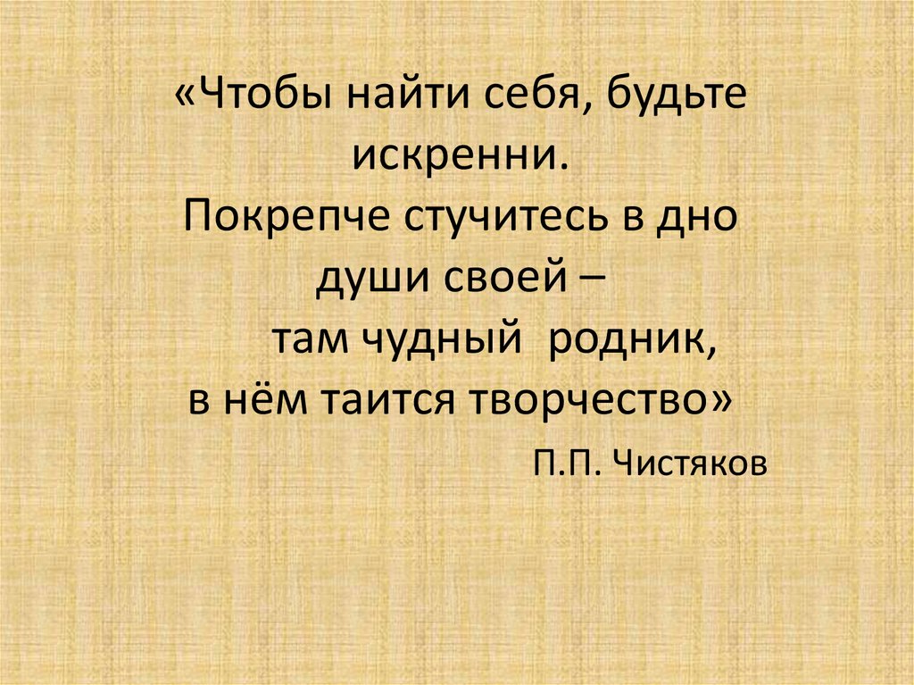 «Чтобы найти себя, будьтеискренни.