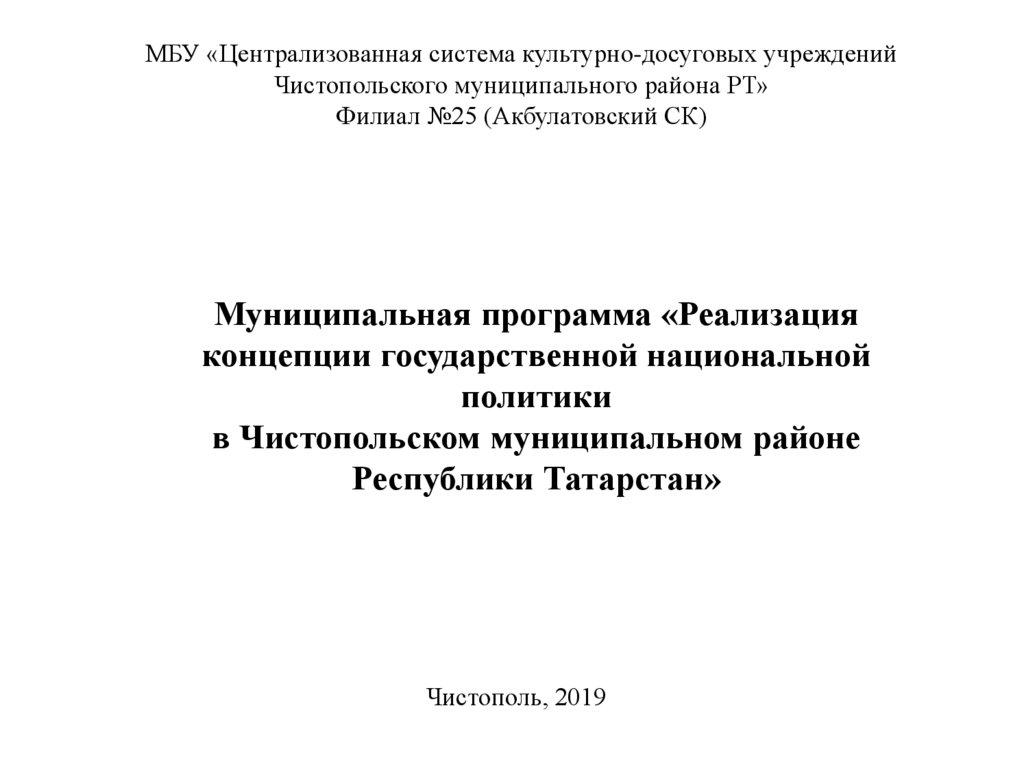 Муниципальная программа «Реализация концепции государственной национальной политики в Чистопольском муниципальном районе»