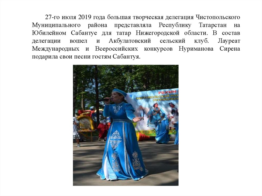 27-го июля 2019 года большая творческая делегация ЧистопольскогоМуниципального района представляла Республику Татарстан на