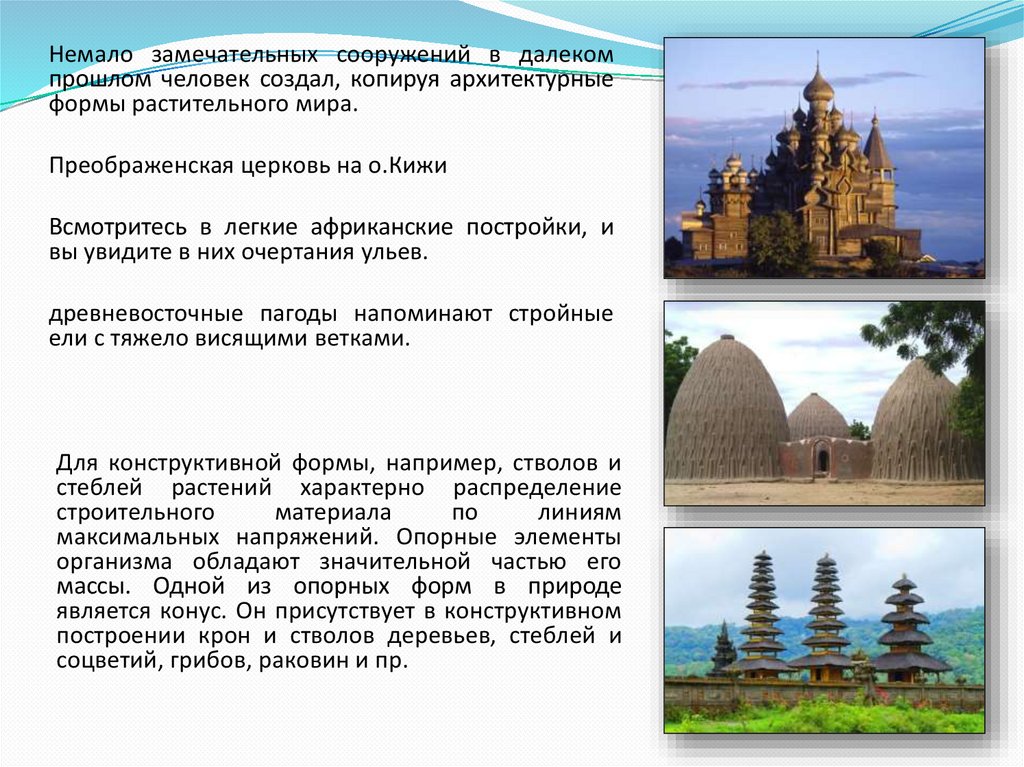 Немало замечательных сооружений в далекомпрошлом человек создал, копируя архитектурные