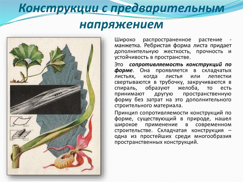 Широко распространенное растение манжетка. Ребристая форма листа придает