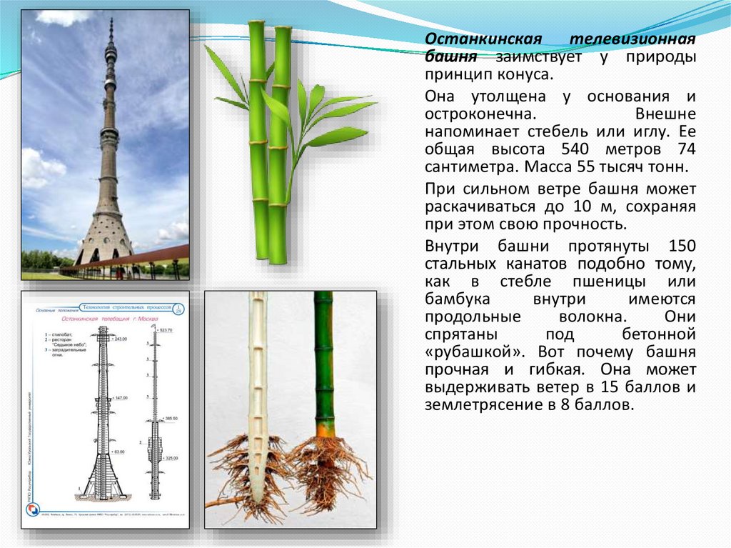 Останкинская телевизионнаябашня заимствует у природы