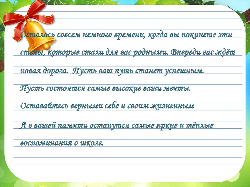 Осталось совсем немного времени, когда вы покинете этистены, которые стали для вас родными. Впереди вас ждёт