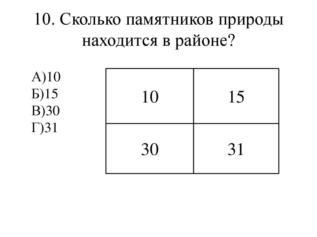 10. Сколько памятников природынаходится в районе?