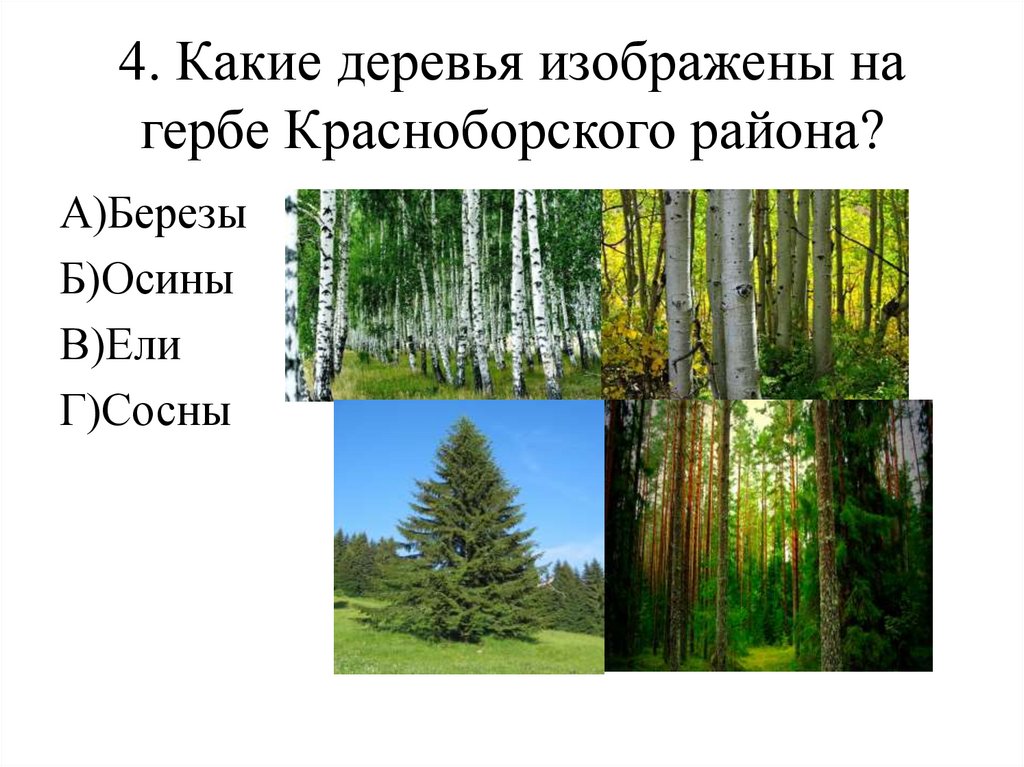 4. Какие деревья изображены нагербе Красноборского района?