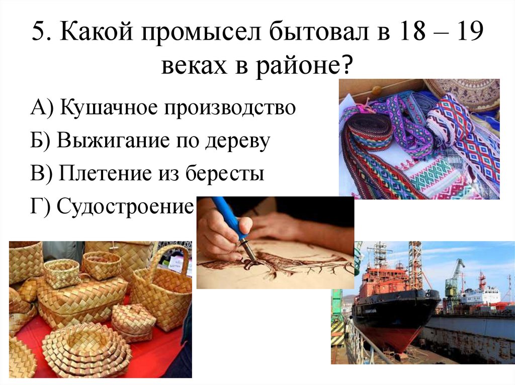 5. Какой промысел бытовал в 18 – 19веках в районе?