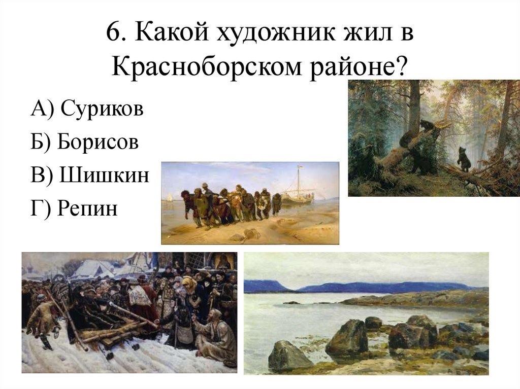 6. Какой художник жил вКрасноборском районе?