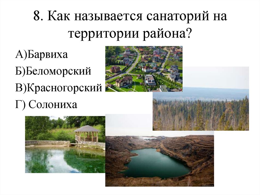 8. Как называется санаторий натерритории района?