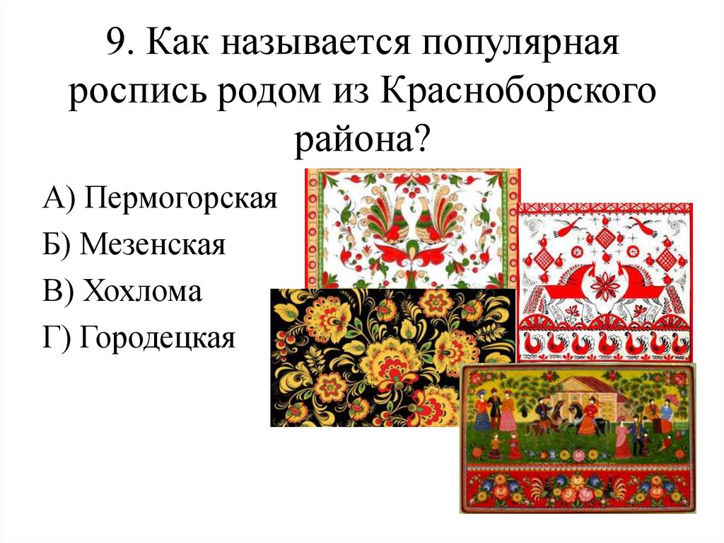 9. Как называется популярнаяроспись родом из Красноборского