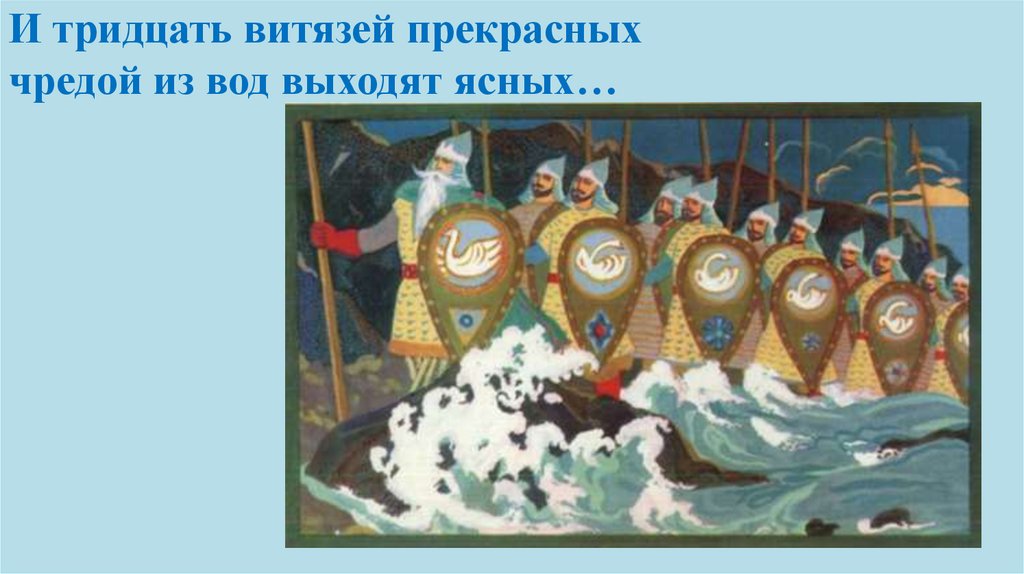 И тридцать витязей прекрасныхчредой из вод выходят ясных…