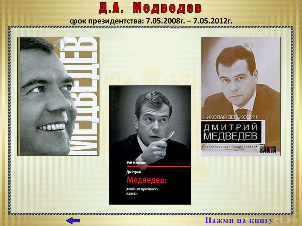 срок президентства: 7.05.2008г. – 7.05.2012г.Нажми на книгу