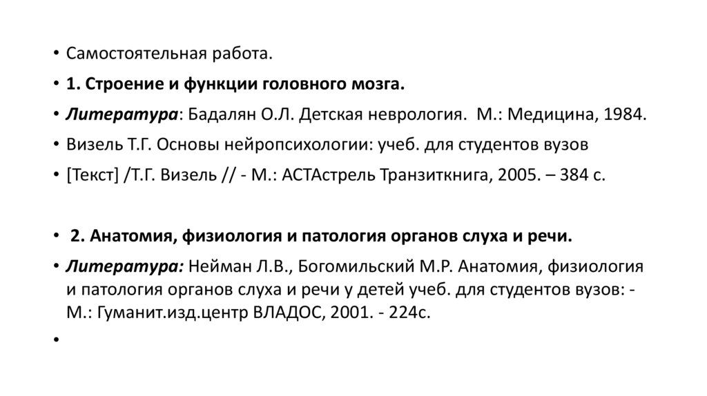 • Литература: Нейман Л.В., Богомильский М.Р. Анатомия, физиология