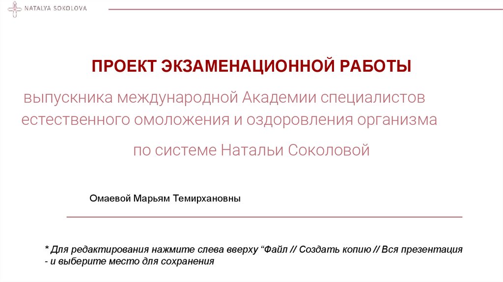 Проект экзаменационной работы выпускника международной академии специалистов естественного омоложения и оздоровления организма