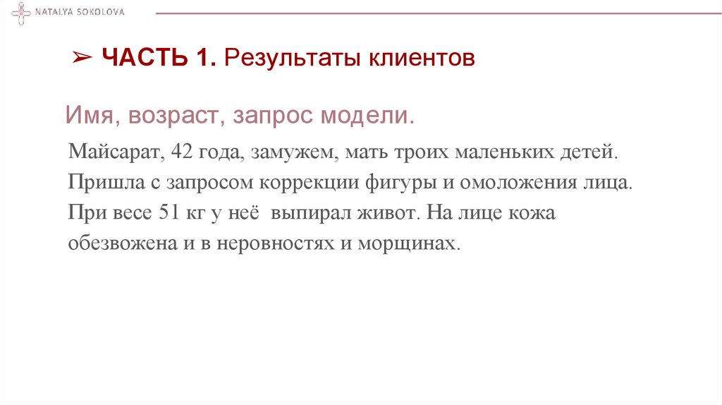 Пришла с запросом коррекции фигуры и омоложения лица.