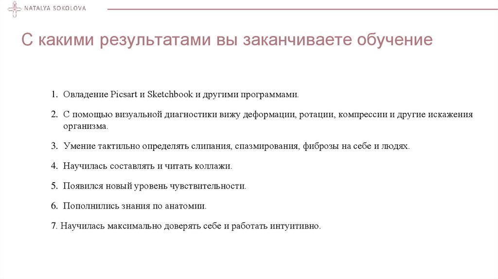 С какими результатами вы заканчиваете обучение1. Овладение Picsart и Sketchbook и другими программами.