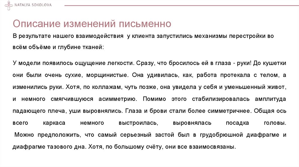 Описание изменений письменноВ результате нашего взаимодействия у клиента запустились механизмы перестройки во