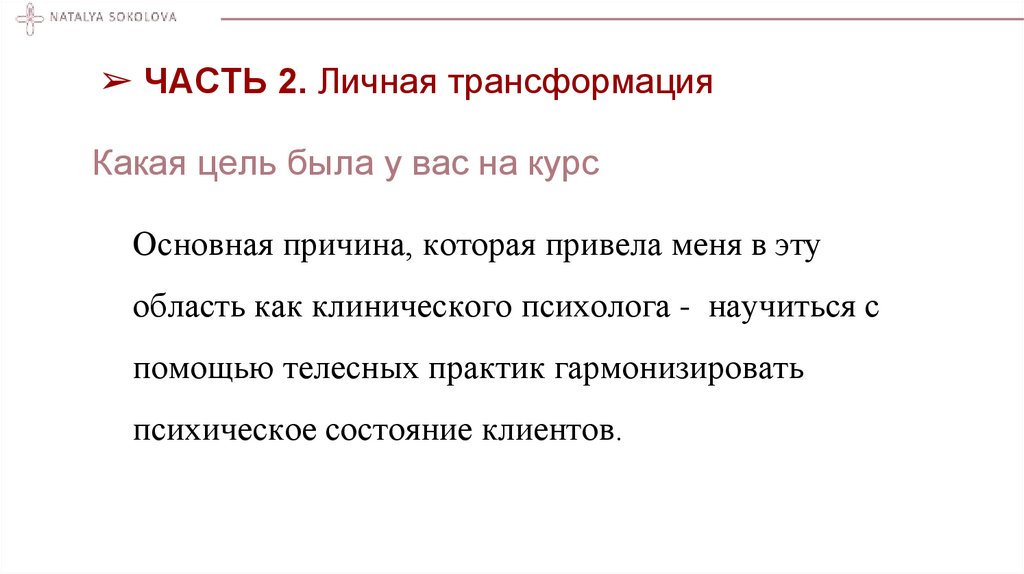 ➢ ЧАСТЬ 2. Личная трансформацияКакая цель была у вас на курс
