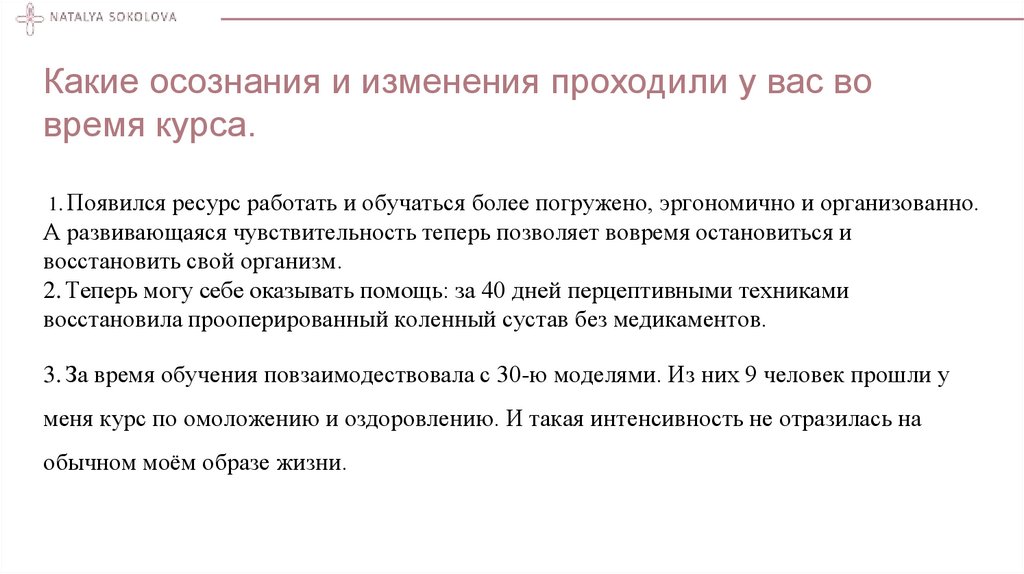 Какие осознания и изменения проходили у вас вовремя курса.