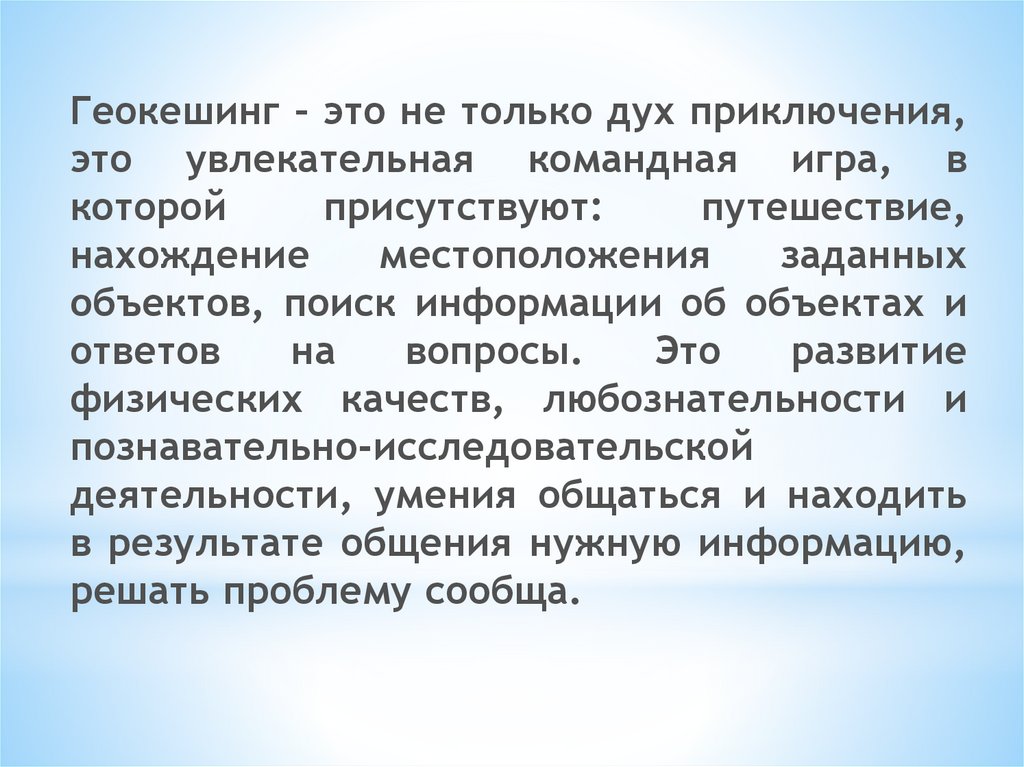 Геокешинг – это не только дух приключения,это увлекательная командная игра, в