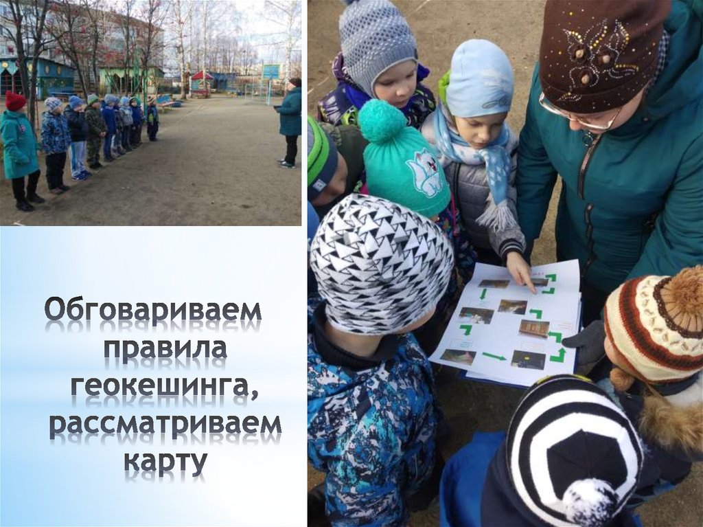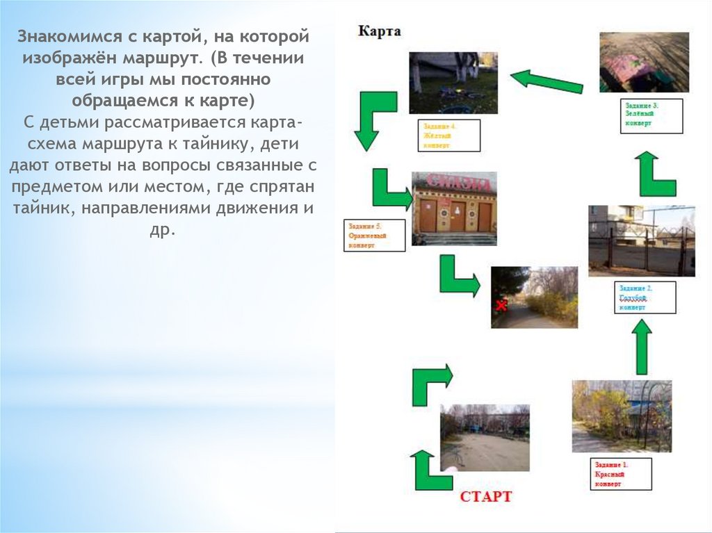С детьми рассматривается картасхема маршрута к тайнику, дети