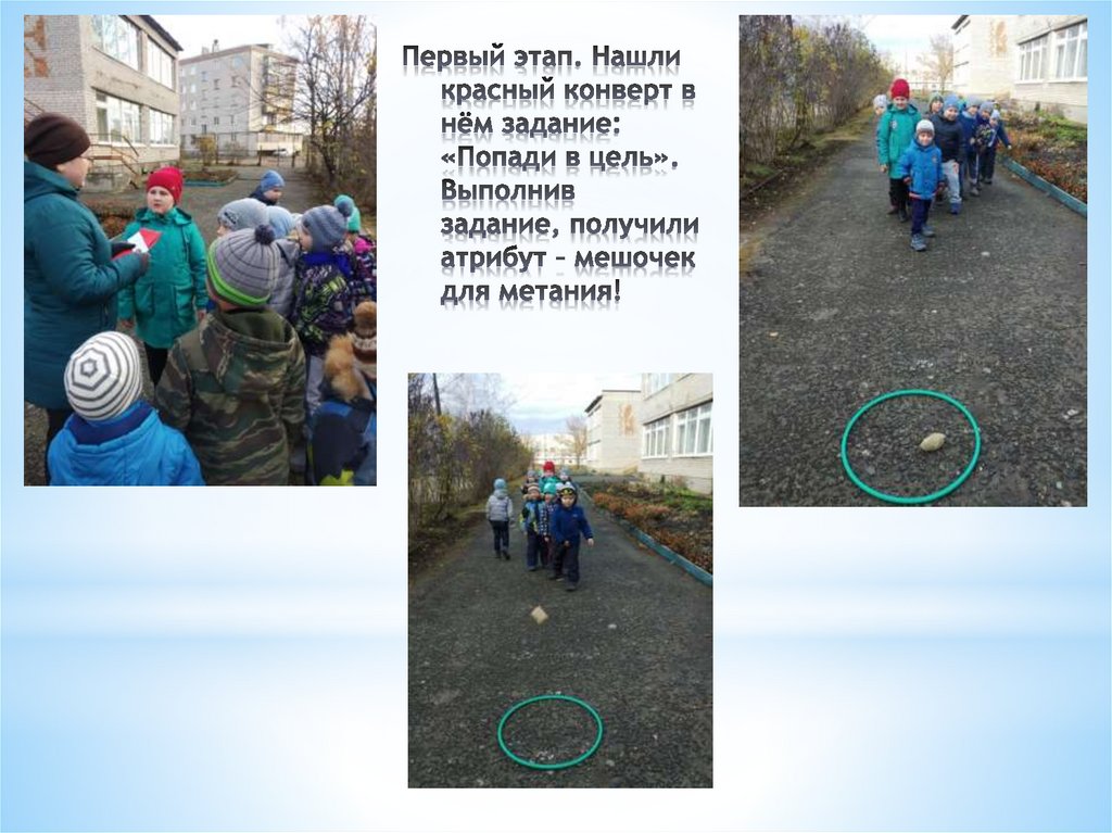 - Закрепить метание в цель, разные виды ходьбы,
