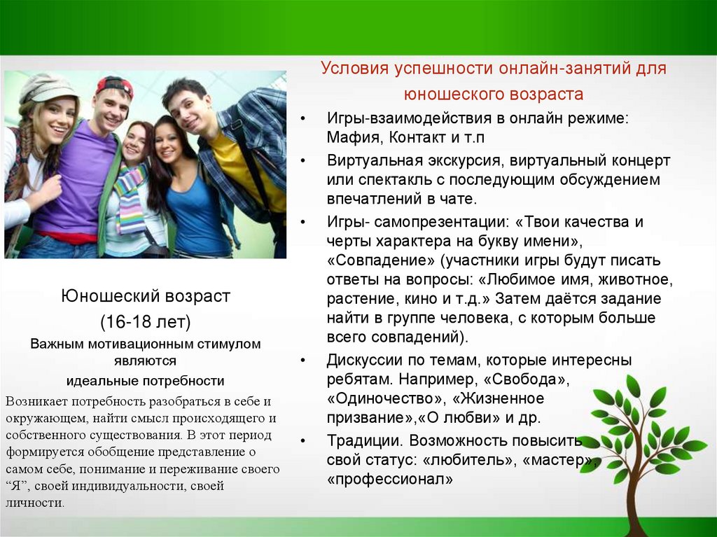 Условия успешности онлайн-занятий дляподростков 12-15 лет