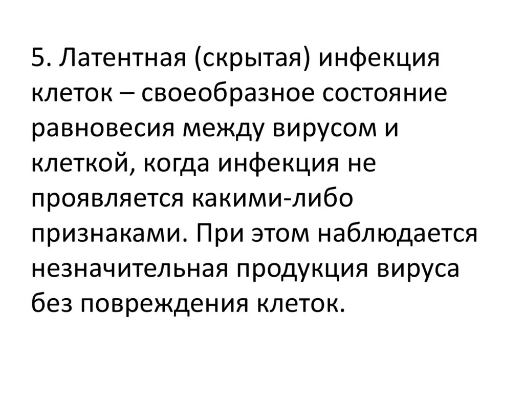 5. Латентная (скрытая) инфекцияклеток – своеобразное состояние