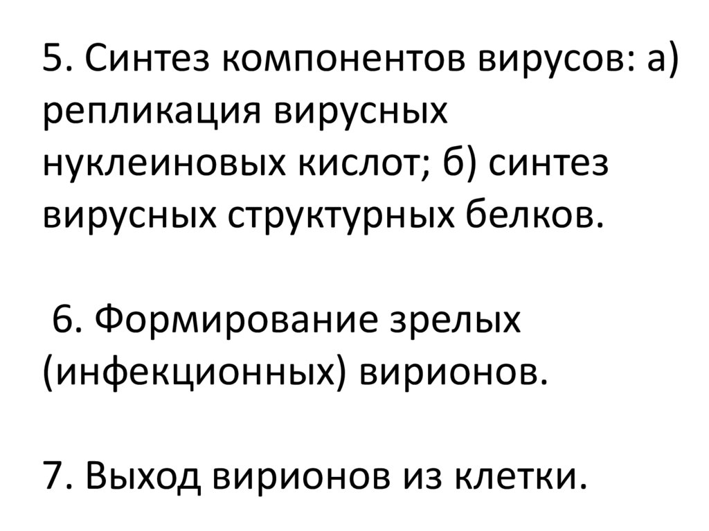 5. Синтез компонентов вирусов: а)репликация вирусных