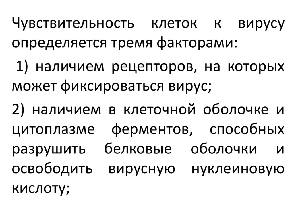 Чувствительность клеток к вирусуопределяется тремя факторами: