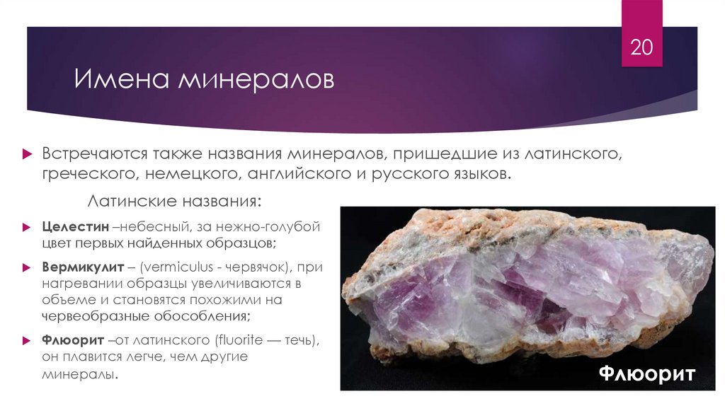 20Имена минералов