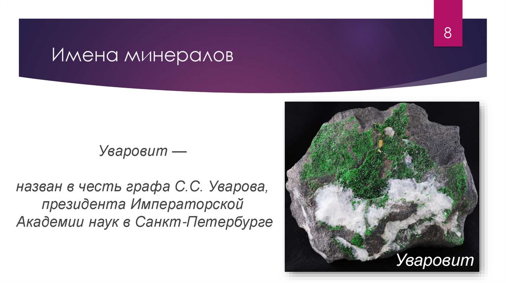 8Имена минералов