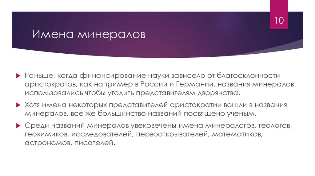 10Имена минералов