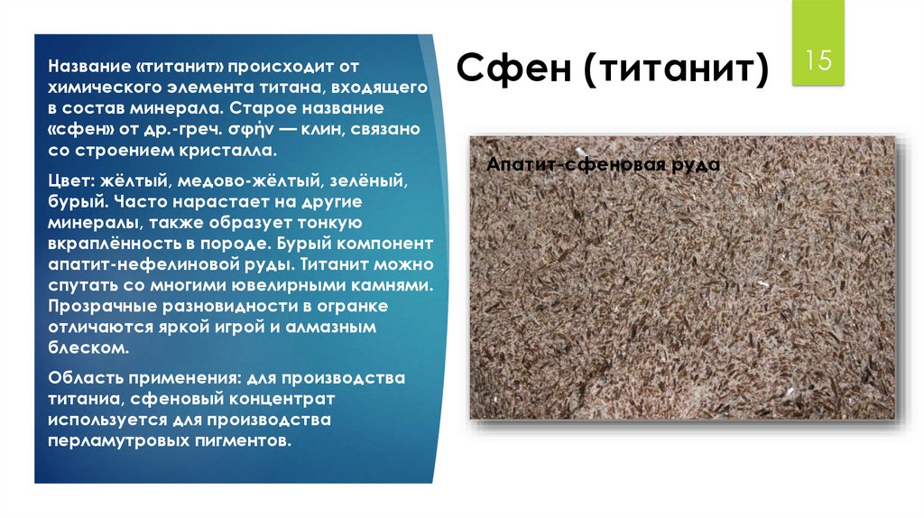 апатит-нефелиновой руды. Титанит можно