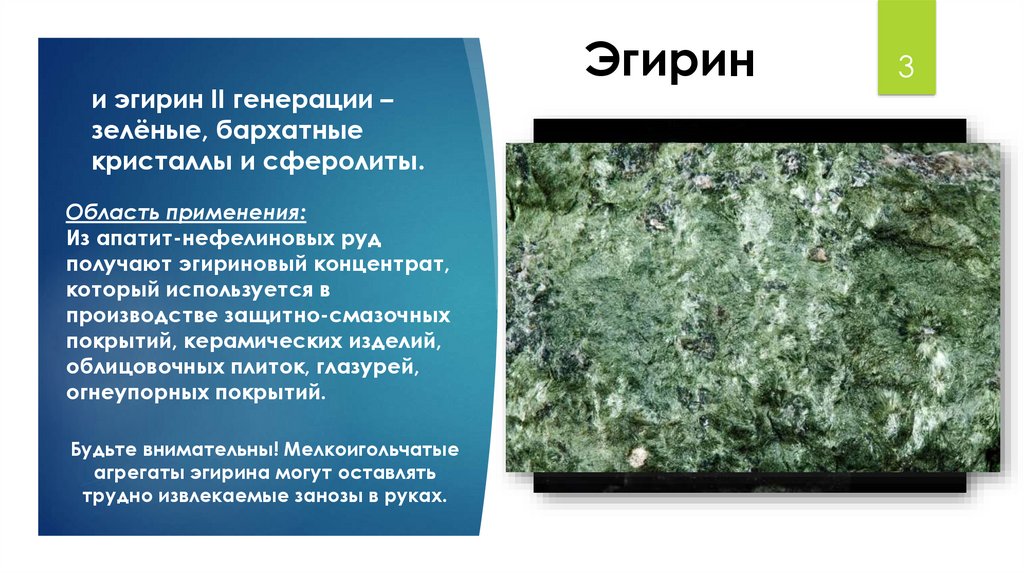 и эгирин II генерации –зелёные, бархатные