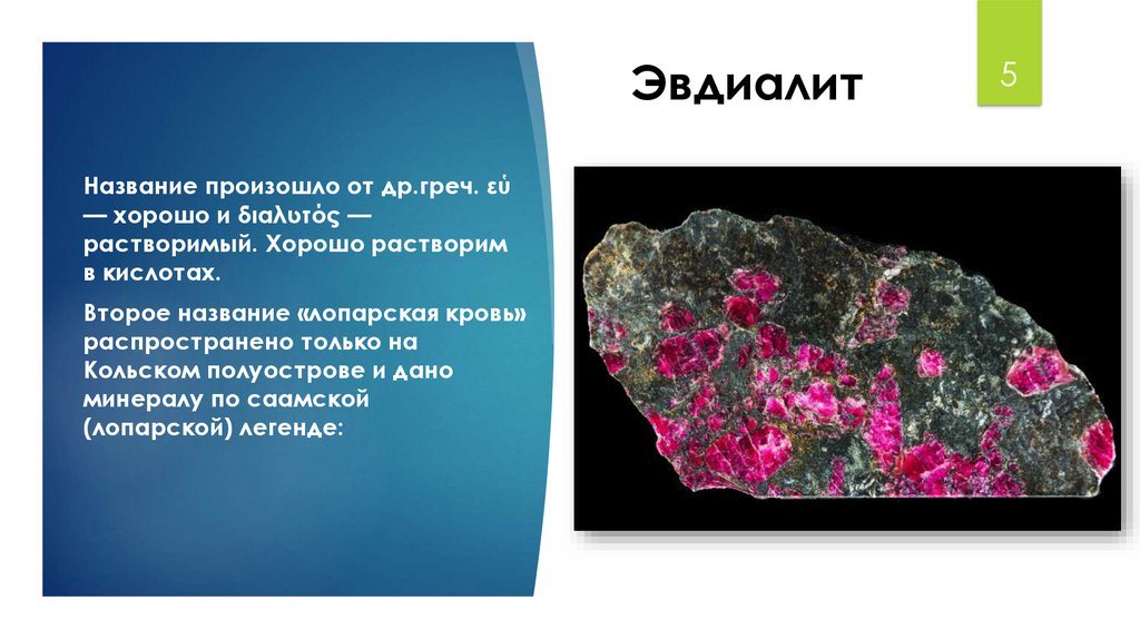 ЭвдиалитНазвание произошло от др.греч. εὑ