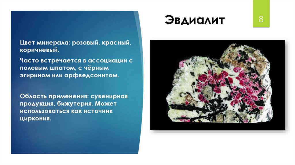 ЭвдиалитЦвет минерала: розовый, красный,