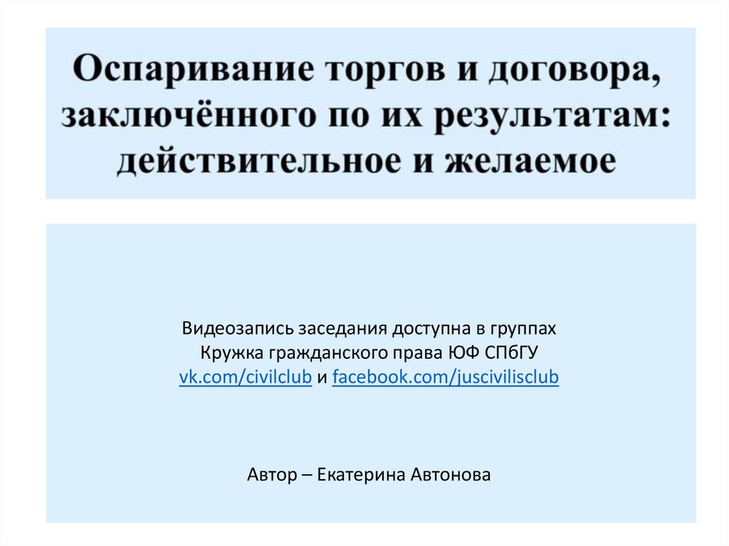 Видеозапись заседания доступна в группахКружка гражданского права ЮФ СПбГУ