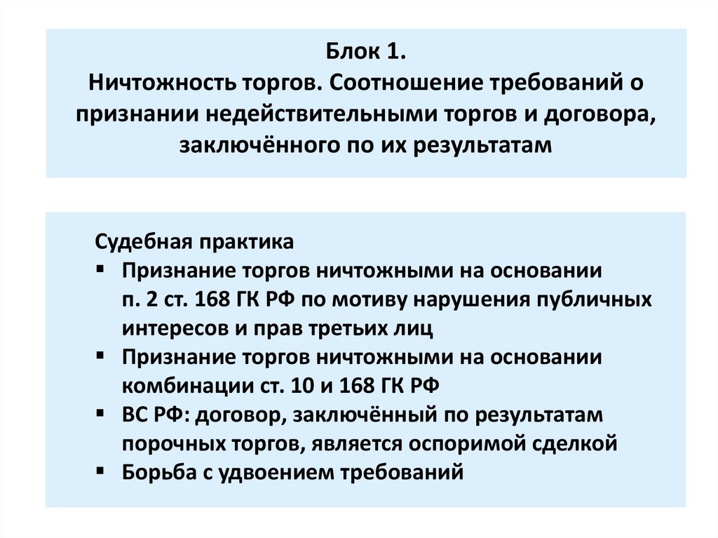 Блок 1.Ничтожность торгов. Соотношение требований о