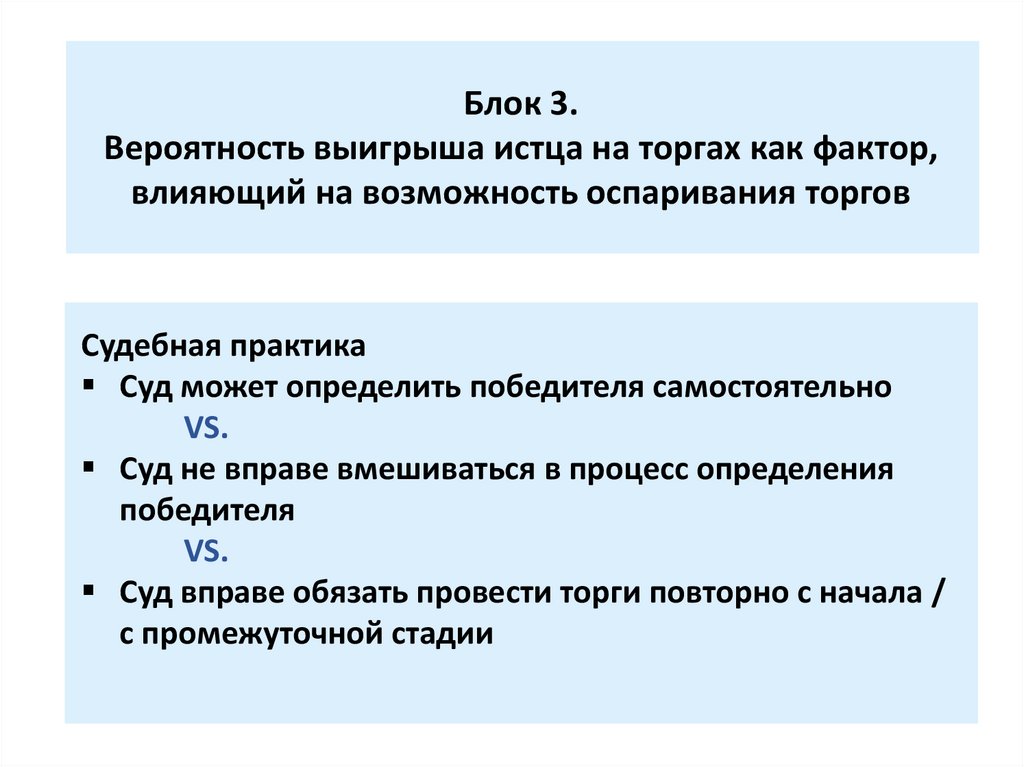 Блок 3.Вероятность выигрыша истца на торгах как фактор,